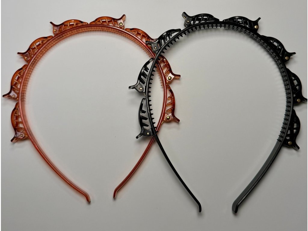 Štýlová čelenka s clipmi po celom obvode pomáha udržať vlasy pevne na mieste a zároveň vytvoriť prirodzený objem.